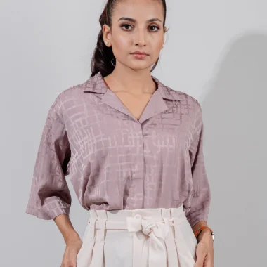Luxuary Double Silk Casual tops has cuban collar details, has center front double Button placket details, has short sleeve details, has straight hemline.