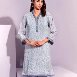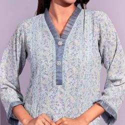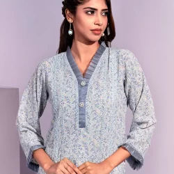 Luxury Fine Alex georgette Short kamiz has v- neck with contrast ruffle & lace details, has front part lace details, has front hemline contrast ruffle with lace details, has full sleeve hemline contrast ruffle with lace detail, back side has lace details, has bothside slit, has butter lining for easy & comfort.