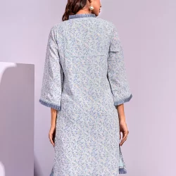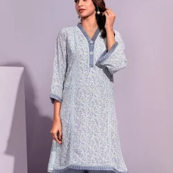 Female Contrast Ruffle With Lace Details Short Kamiz | Arctic Blue