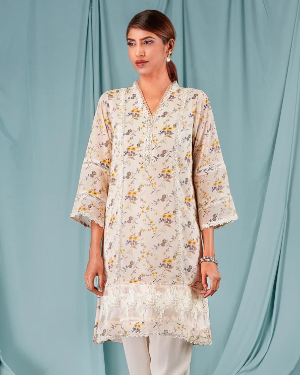Sold OutFemale Contrast Tissue Ruffle Lace Details Short kamiz| Off White