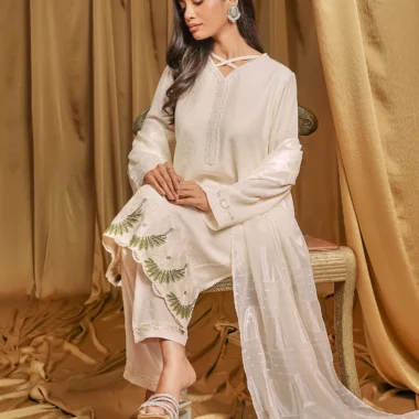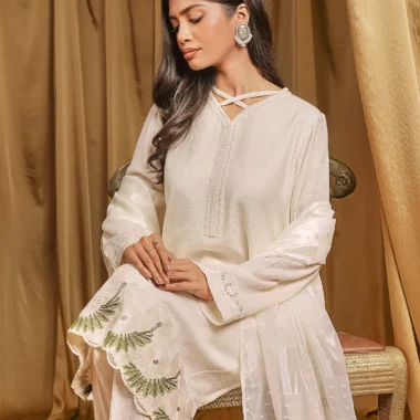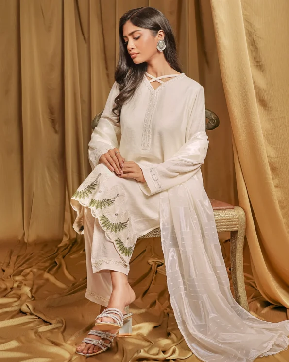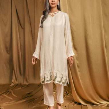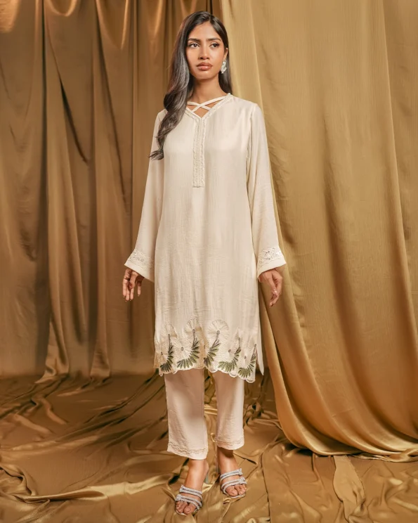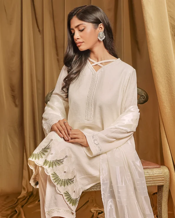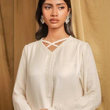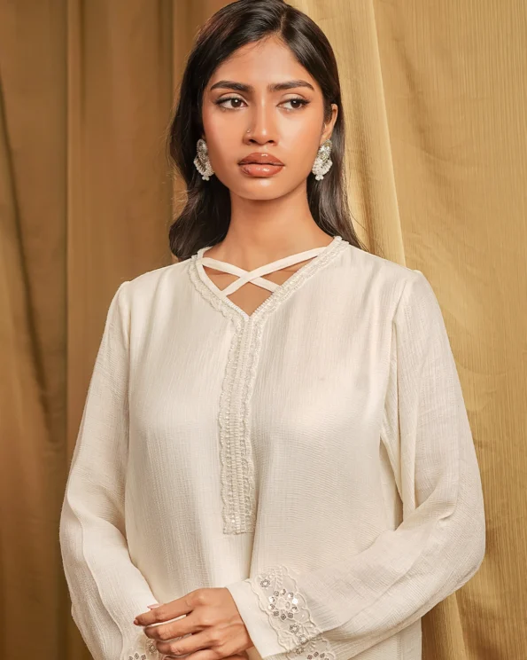 Female Crinkle Chiffon Georgette Short Kameez | Cream White