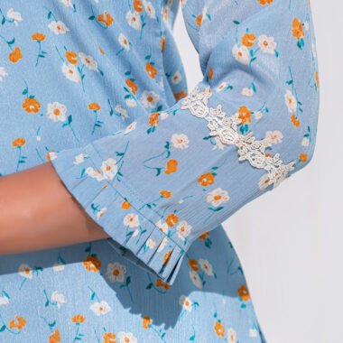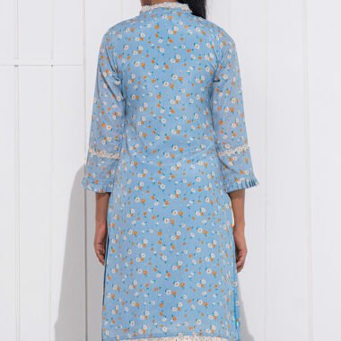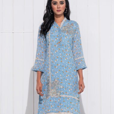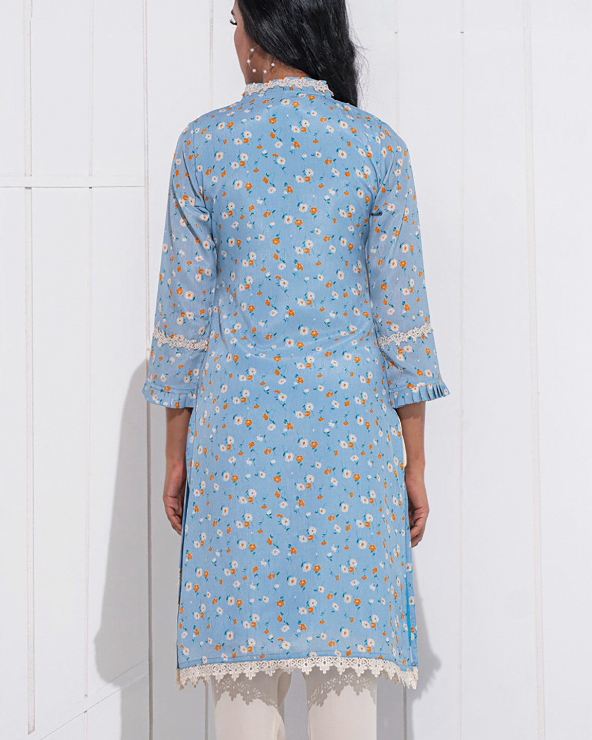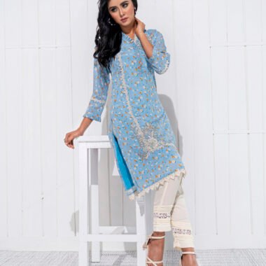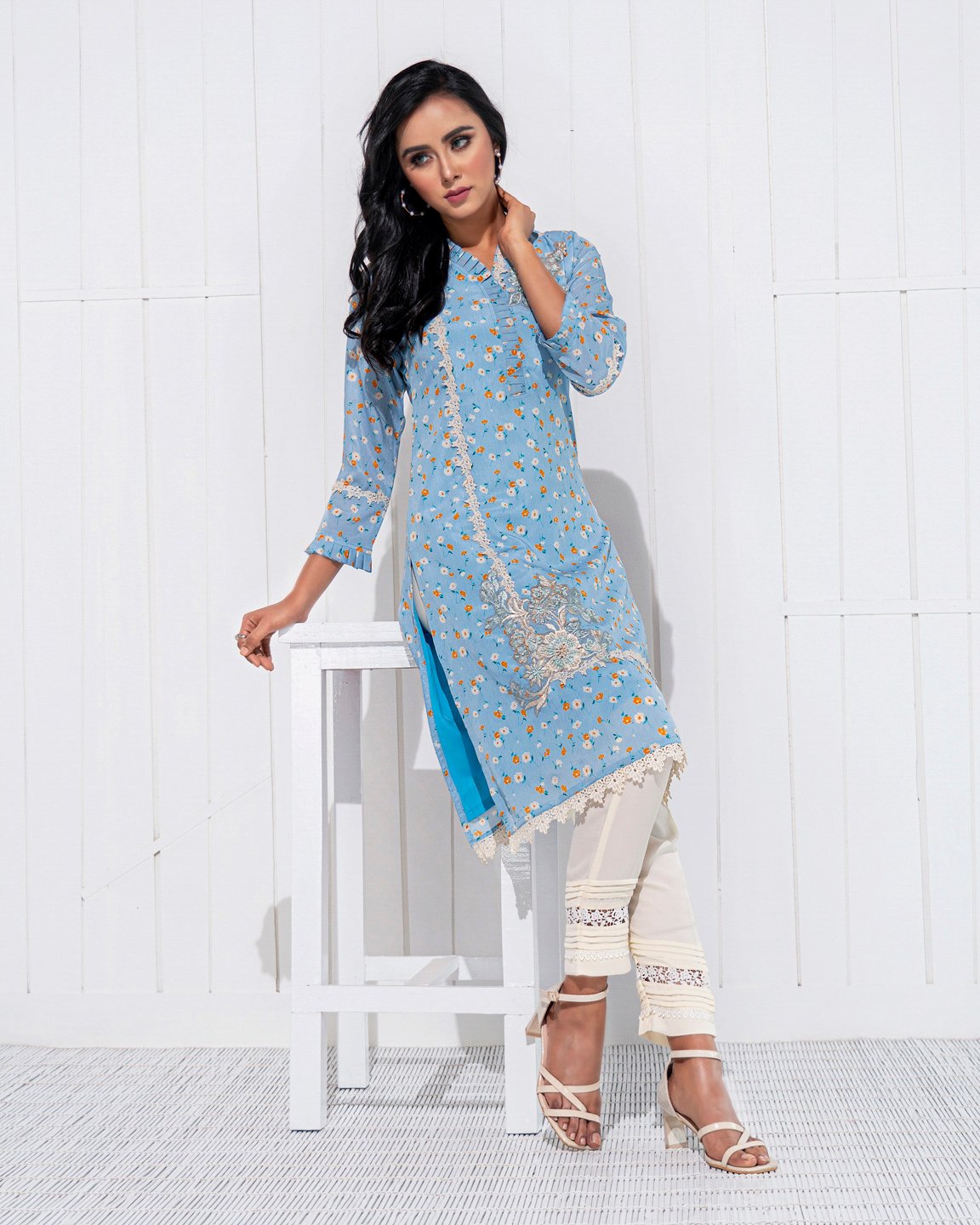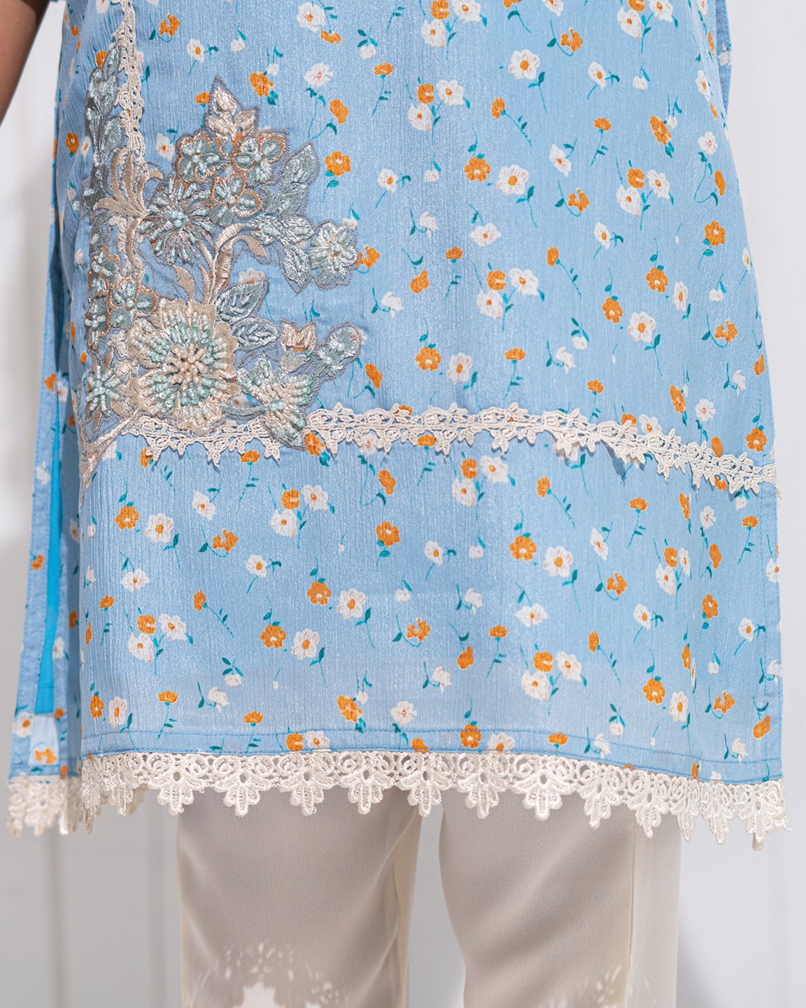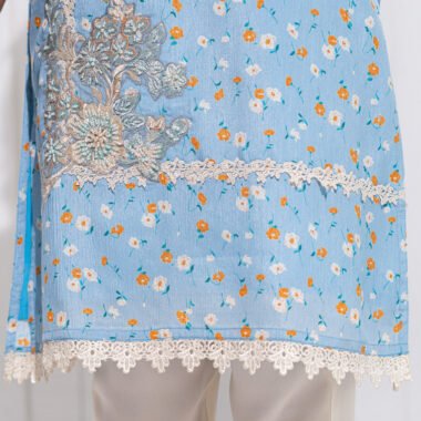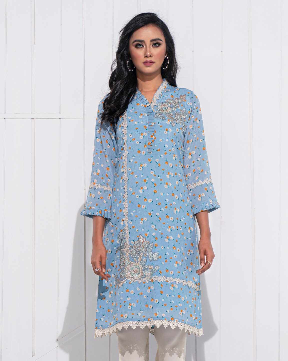 Female Embroidery Work & Lace Details Short Kameez | Teal Blue