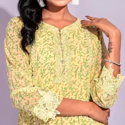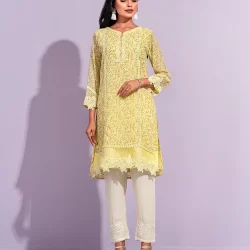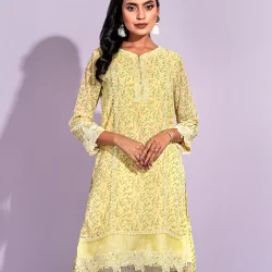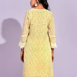 Female Front Yoke Lace Details Short Kameez | Light Yellow