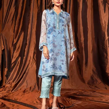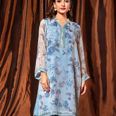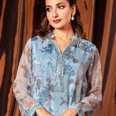 Female Half Collar – Neck Details Short Kameez | Gulf Blue
