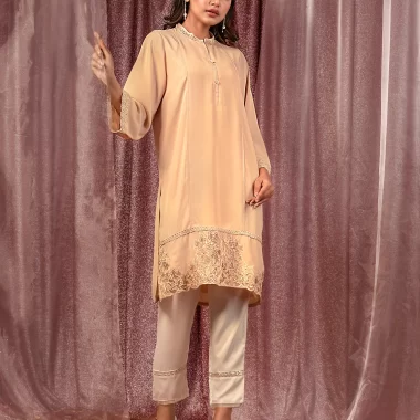 Female Hemline Hand Embroidery Work Details Short Kameez | Peach Dust