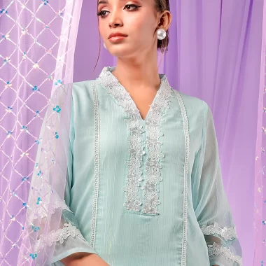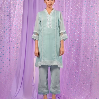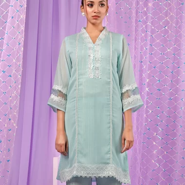 Female Lace Details Short Kameez | Light Sky Blue