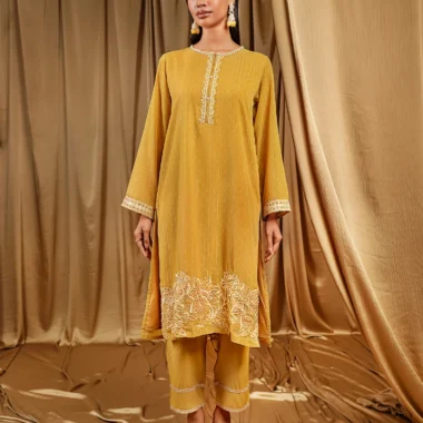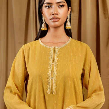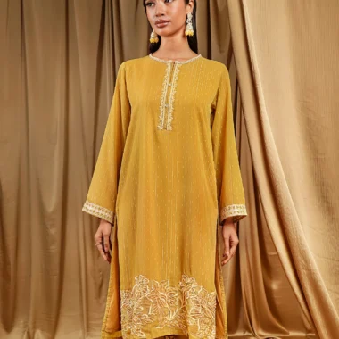 Female Loose Fit Round-Neck Long Kamiz | Jade Yellow