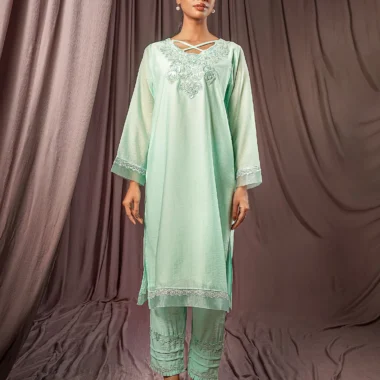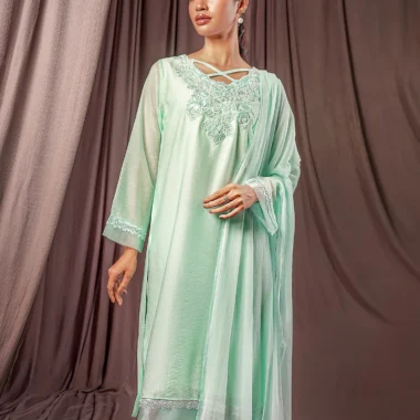 Female Loose Fit Signature-Neck Long Kamiz | Mint