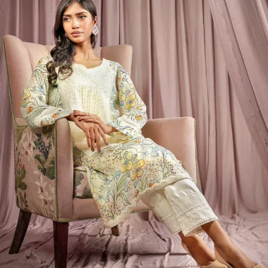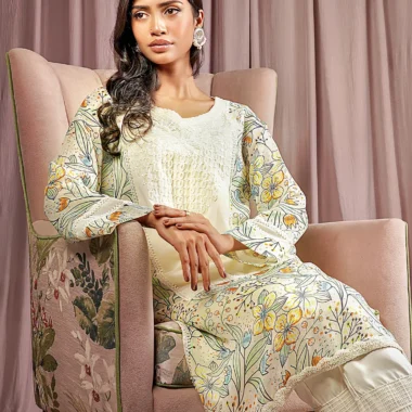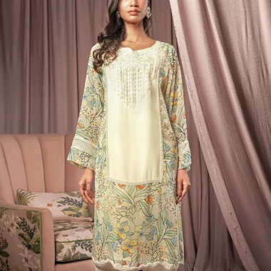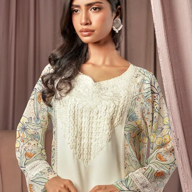 Female Loose Fit Sweetheart-Neck Long Kamiz | Cream White