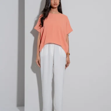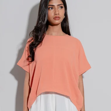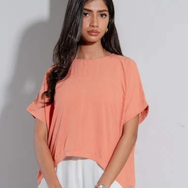 Rayon Loose Fit casual top has round neck details, has center front seam details, has full width details, has back zipper details, has curve ups and down hemline details.