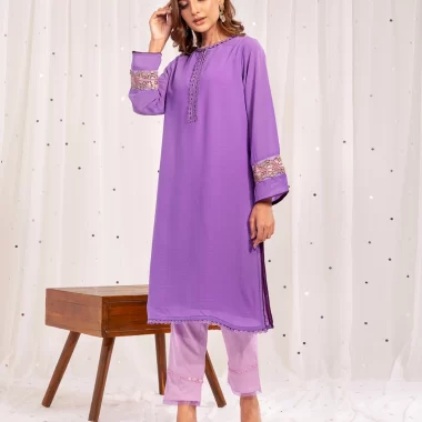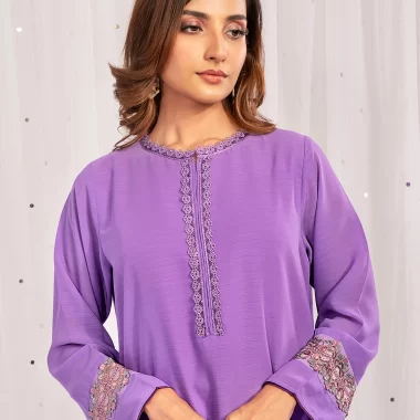 Female Round- Neck Details Fine Crepe Georgette Short Kameez | Lavender