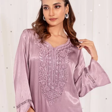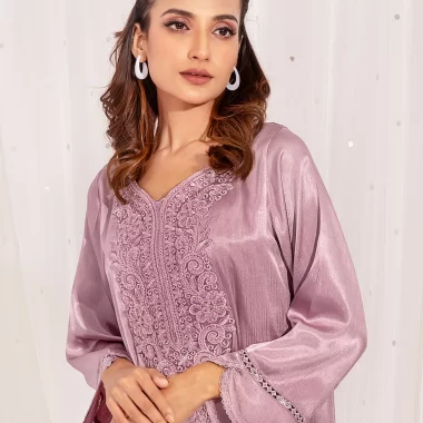 Female Round- Neck Details Long Kameez | Light Onion