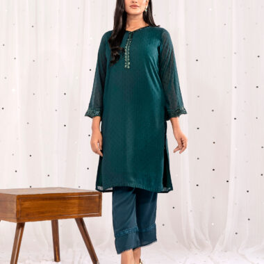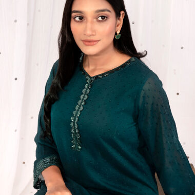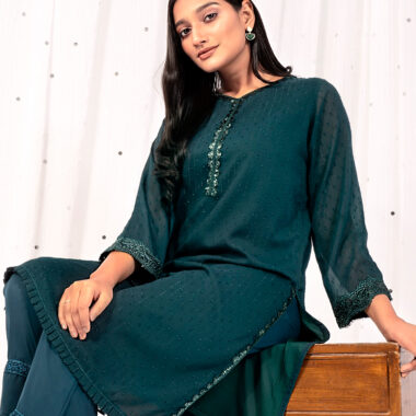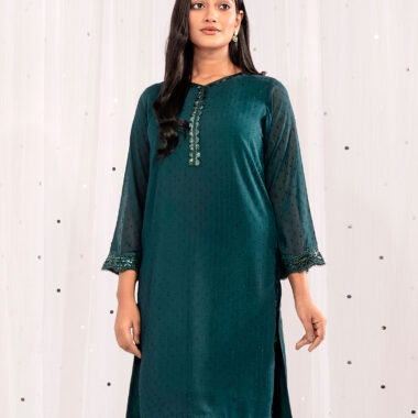 Female Round- Neck Details Short Kameez | Deep Sea Green