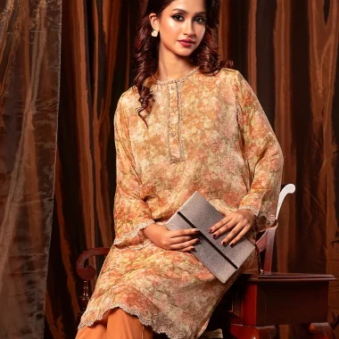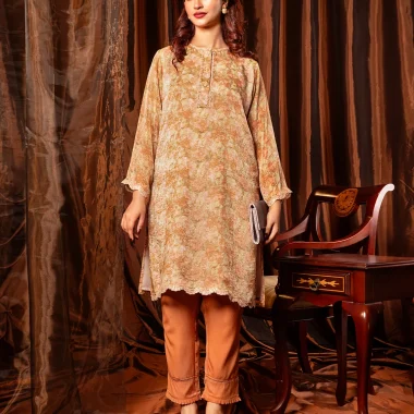 Female Round- Neck Details Short Kameez | Golden Fleece