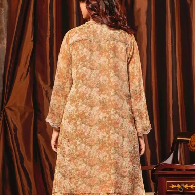 Fine Zari Crepe Georgette Short Kameez has Round-Neck with lace details, front placket has lace and button details, has full sleeve with lace details, hemline has lace details, has both side slits, has butter lining for comfort & easy.