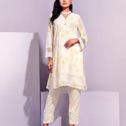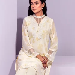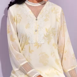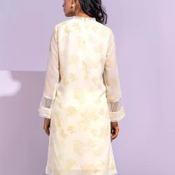Female Round-Neck Lace & Details Short Kameez | Cream