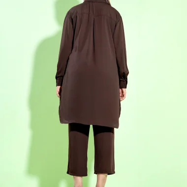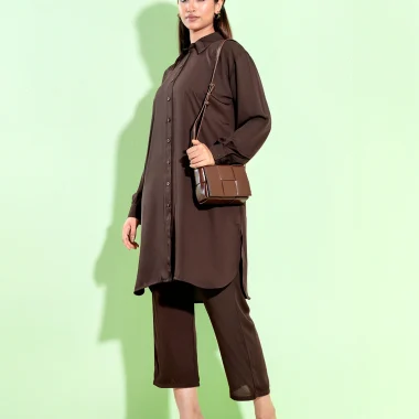 Kameez- Luxury Georgette A-line Co-ord set has Shirt Collar with pintak details, has button placket with functional button details, has drop shoulder, has full Sleeve with cuff and button details ,has bothside slits for comfort & easy, bottom has front waist band & back side has elastic.