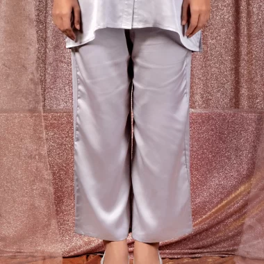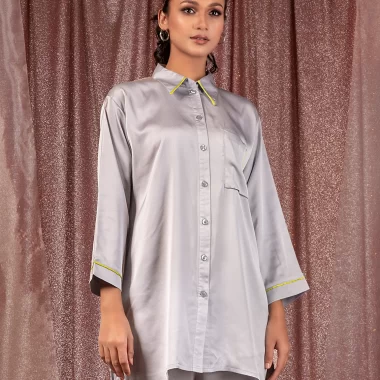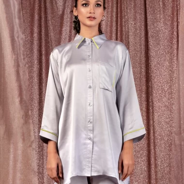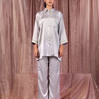 Female Shirt Collar & Front Pocket Details Co-Ord Set | Ash