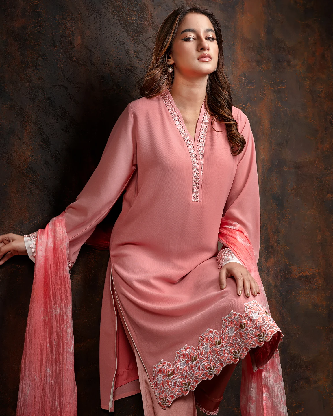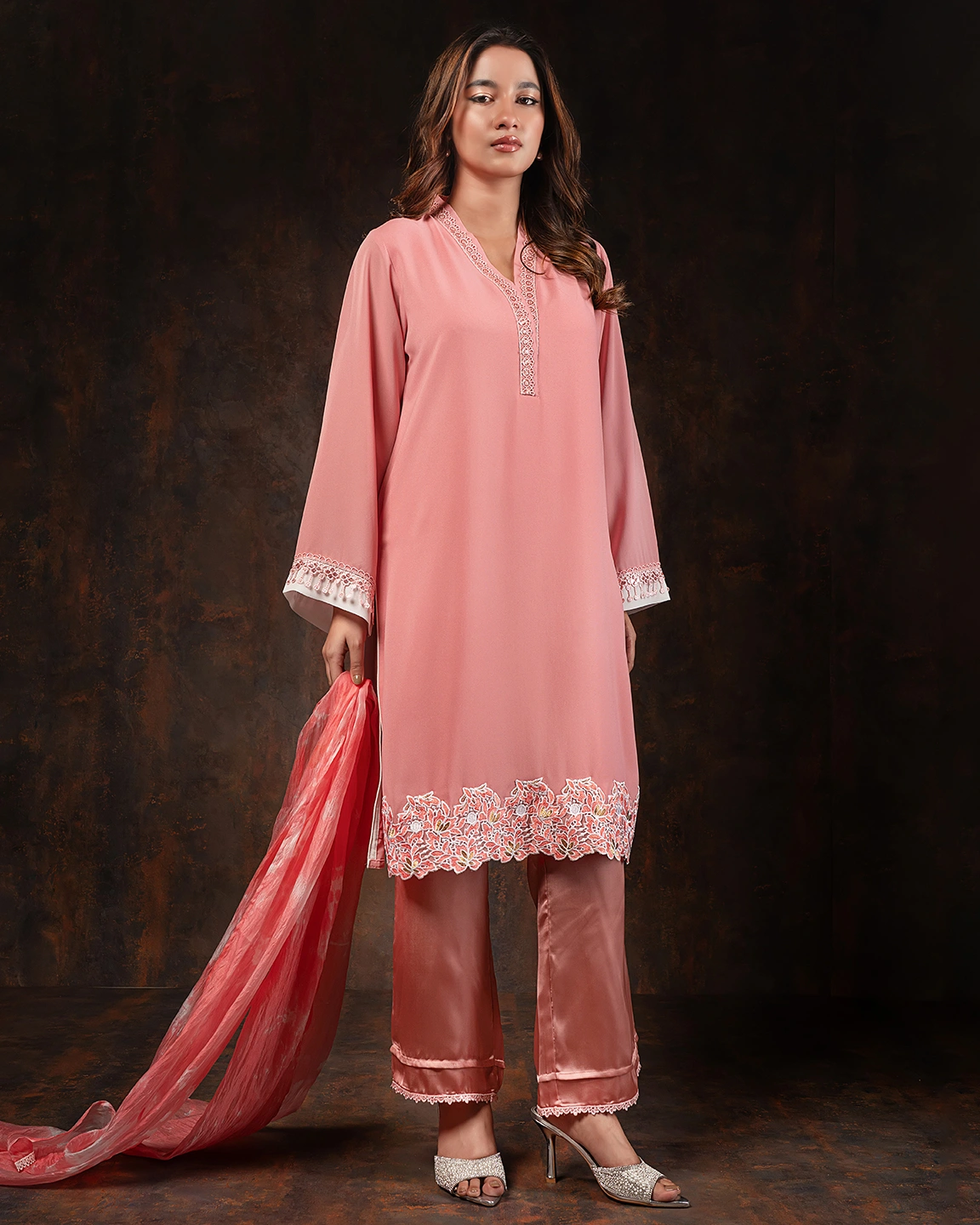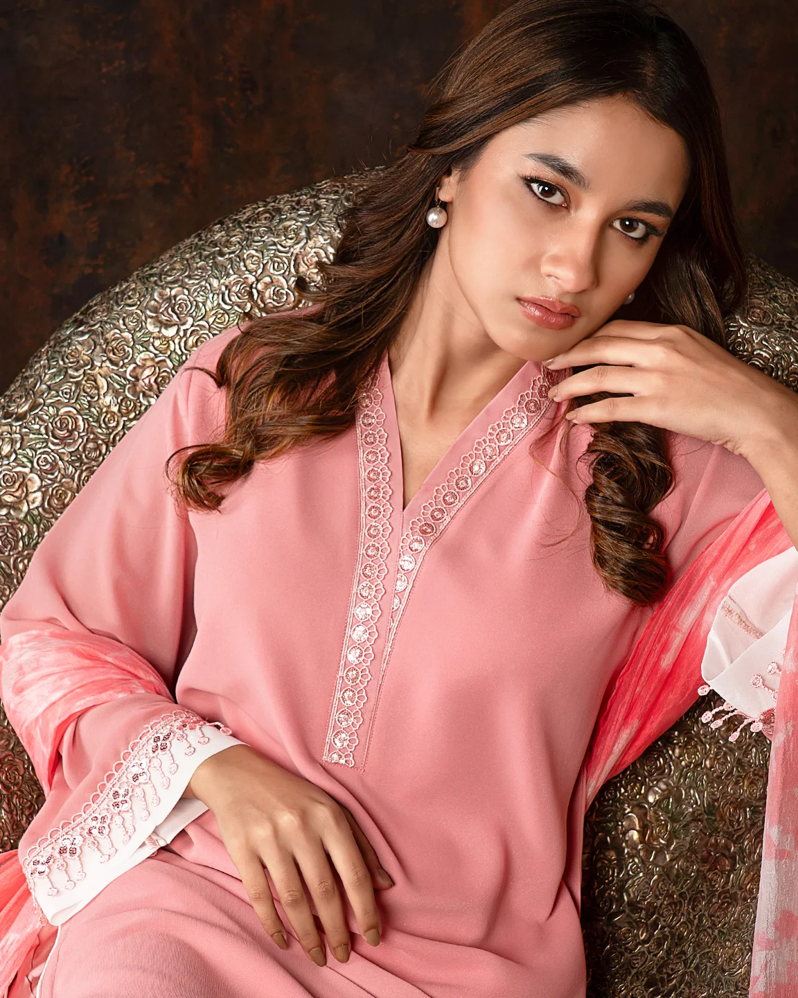 Embroidered Fine Georgette Kameez | Flamingo Pink