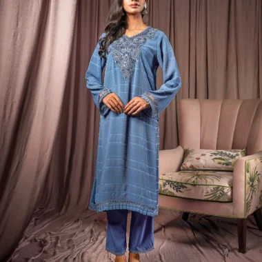 Female Regular Fit Decollete-Neck Long Kamiz | Berry Blue