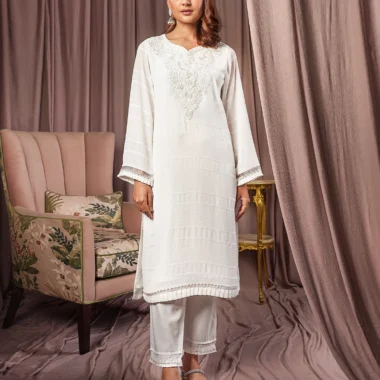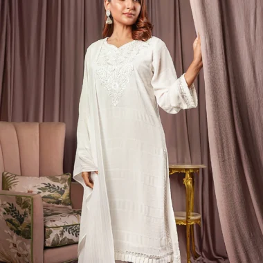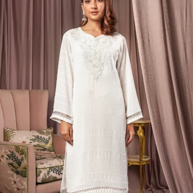 Female Regular Fit Decollete-Neck Long Kamiz | Coconut White