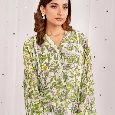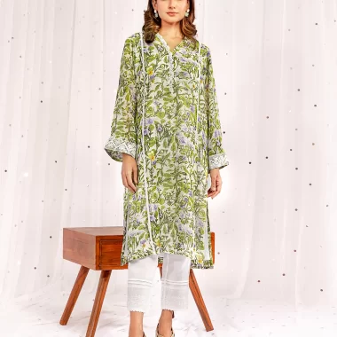 Luxury Georgette Long Kameez has V-Neck with ruffle details, has front neckline lace details, has front princess line join lace details, has full sleeve hemline lace details, has back yoke with join lace details, has both side slits, has butter lining for comfort & easy.