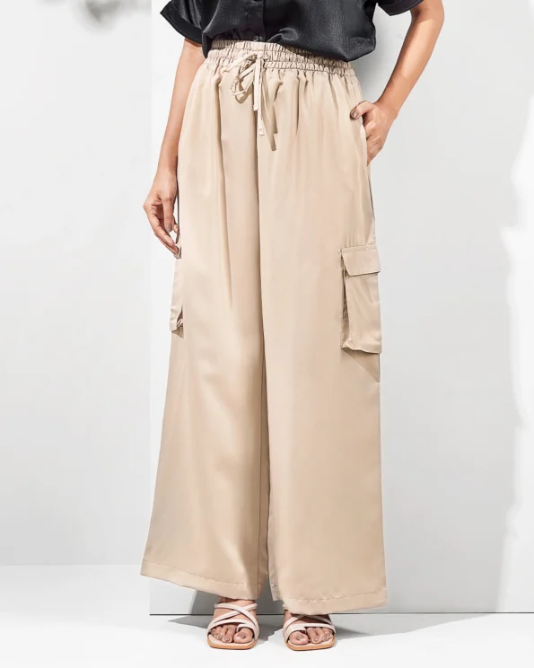 Premium Silk Blend Straight Fit Bottom has wide hem details, has side pocket and two cargo pocket details, has front and back pocket details, has front & back side has full elastic details, has waist ribbon for tight or loose to easy and comfortable to wear.