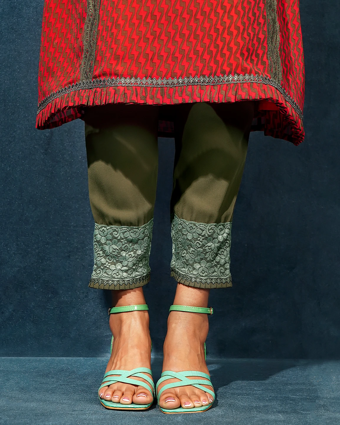 Sold OutFemaleRuffle With Lace details salwar pant | Olive