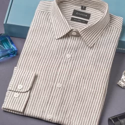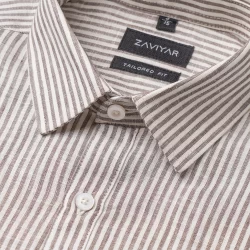 Luxury linen tie collar tailored fit woven striped shirt | Uniform