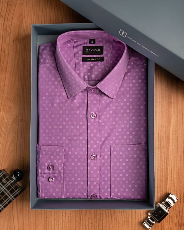 Giza cotton tailored fit woven formal shirt, long sleeve, front has a pocket, tie collar, front classic placket, curved hem.