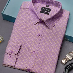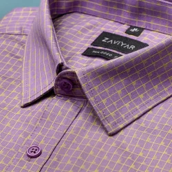 Giza cotton tie collar tailored fit woven formal shirt | Lavender
