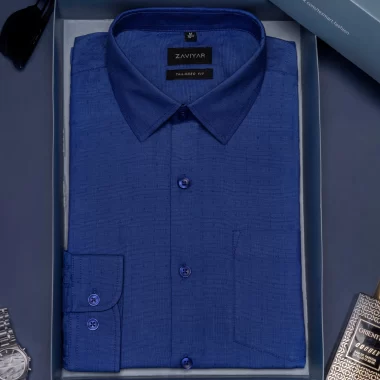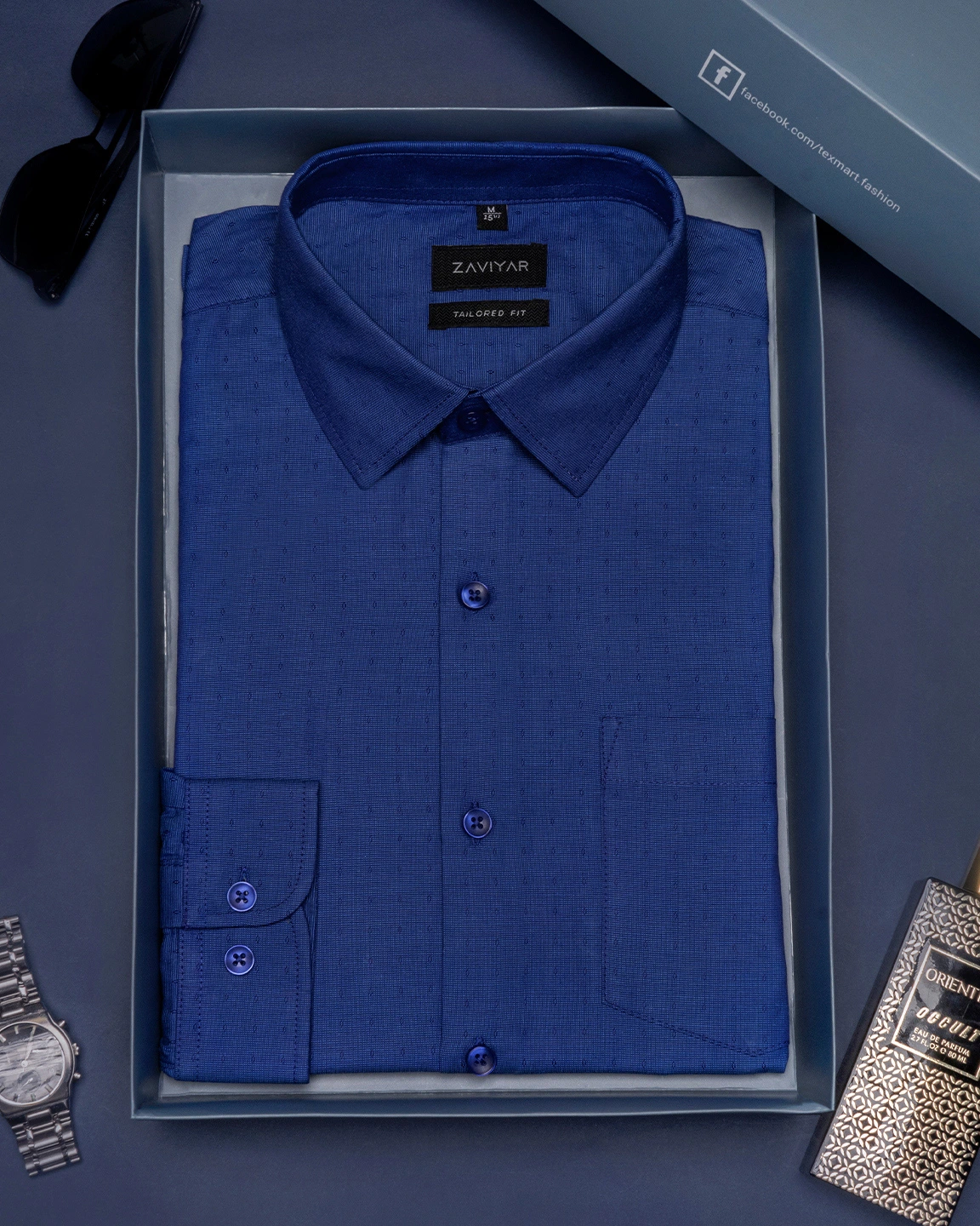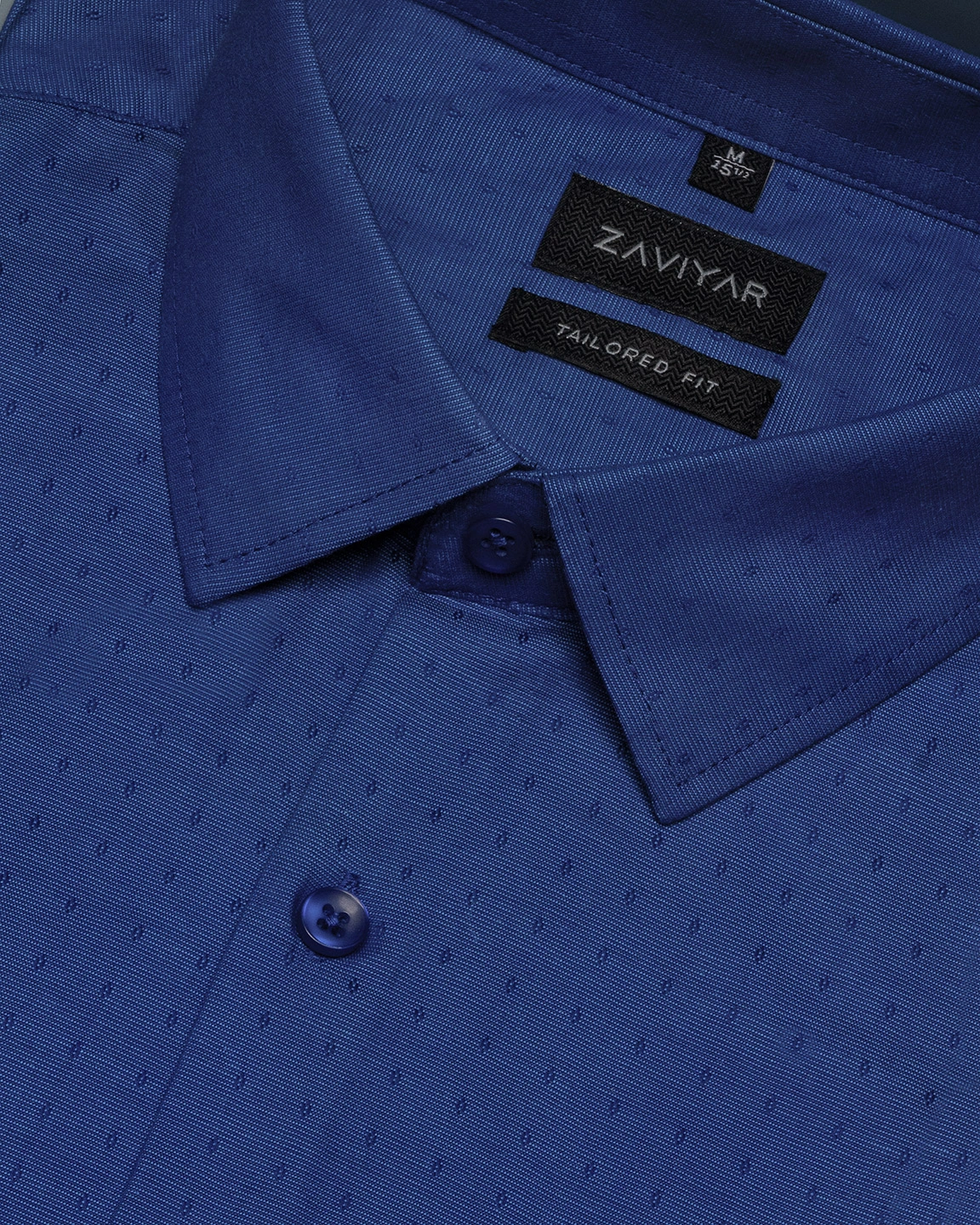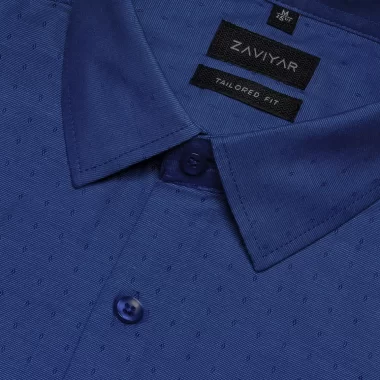 Giza cotton tie collar tailored fit woven formal shirt | Nautical Blue