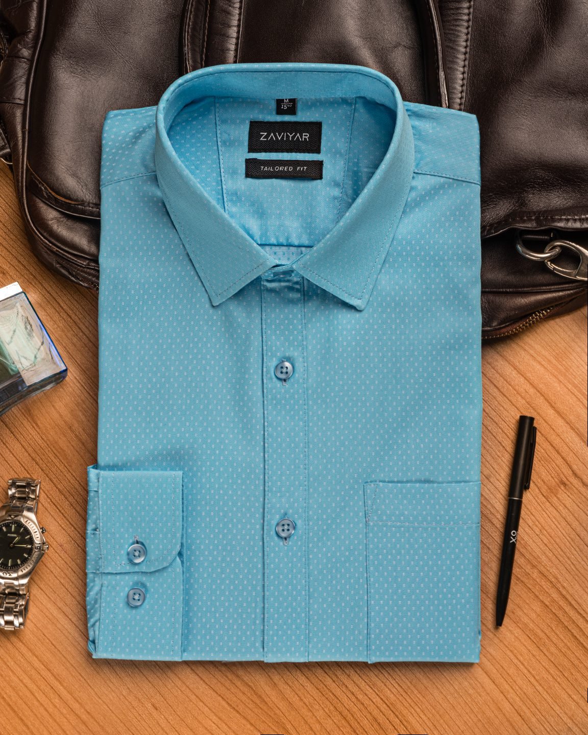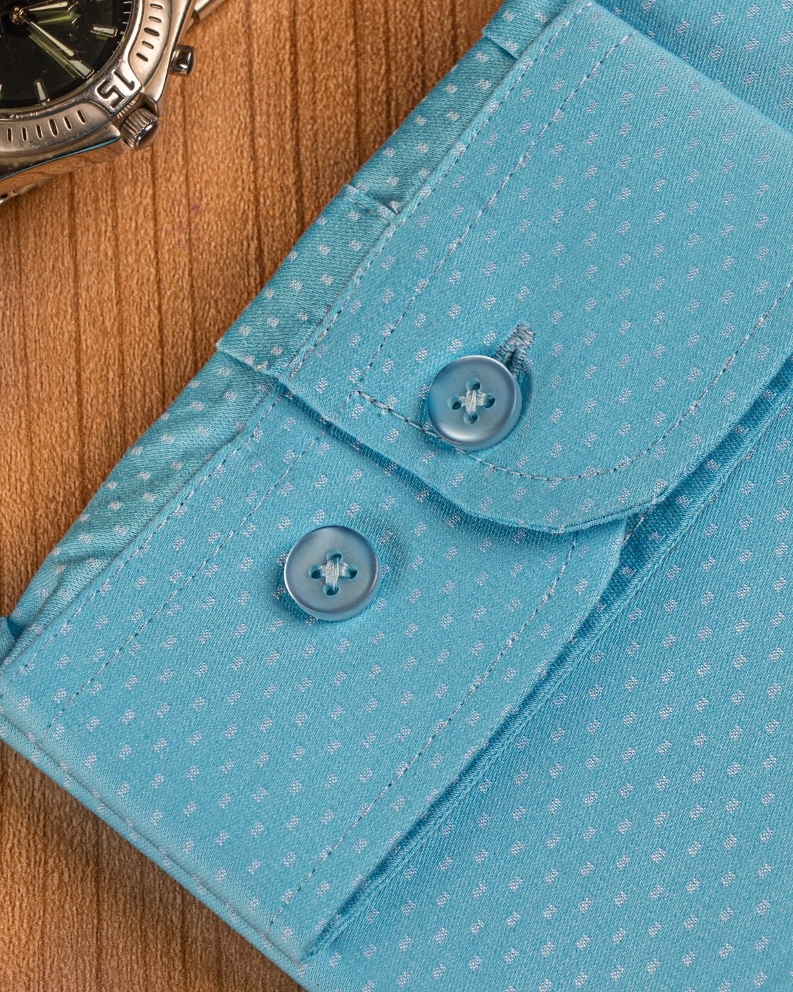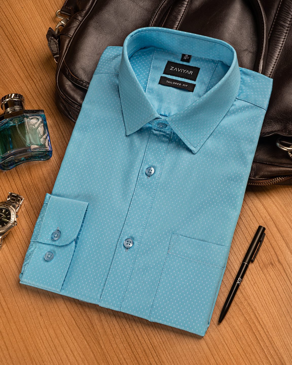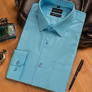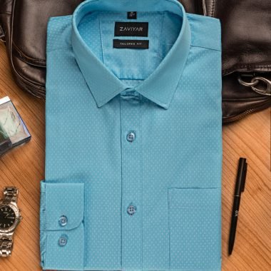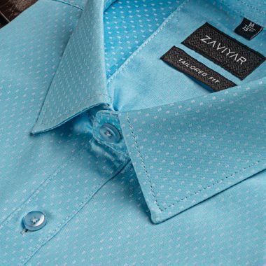 Giza cotton tailored fit woven formal shirt, long sleeve, front has a pocket, tie collar, front button opening classic placket, curved hem.
