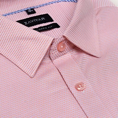 Giza cotton tie collar tailored fit woven formal shirt Peach Blush