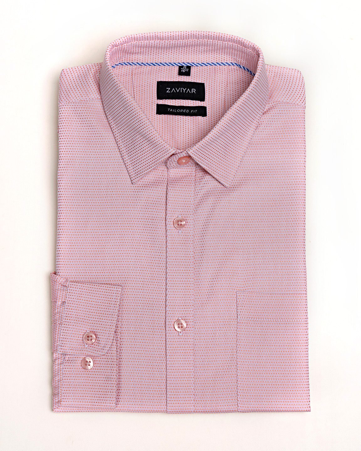 Giza cotton tailored fit woven formal shirt, Long sleeve, back yoke straight line, Front has a pocket, tie collar and collar inside contrast piping, front classic placket, Curved hem.