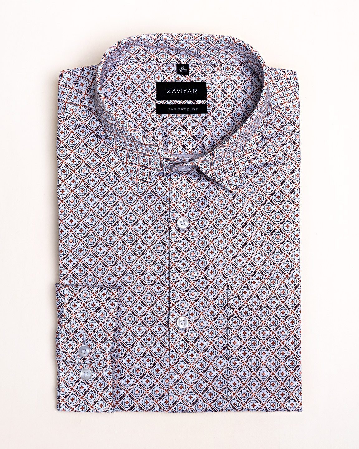 Giza cotton tailored fit woven formal shirt, Long sleeve, back yoke straight, Front has a pocket, tie collar and collar inside contrast details, front box placket, Curved hem.
