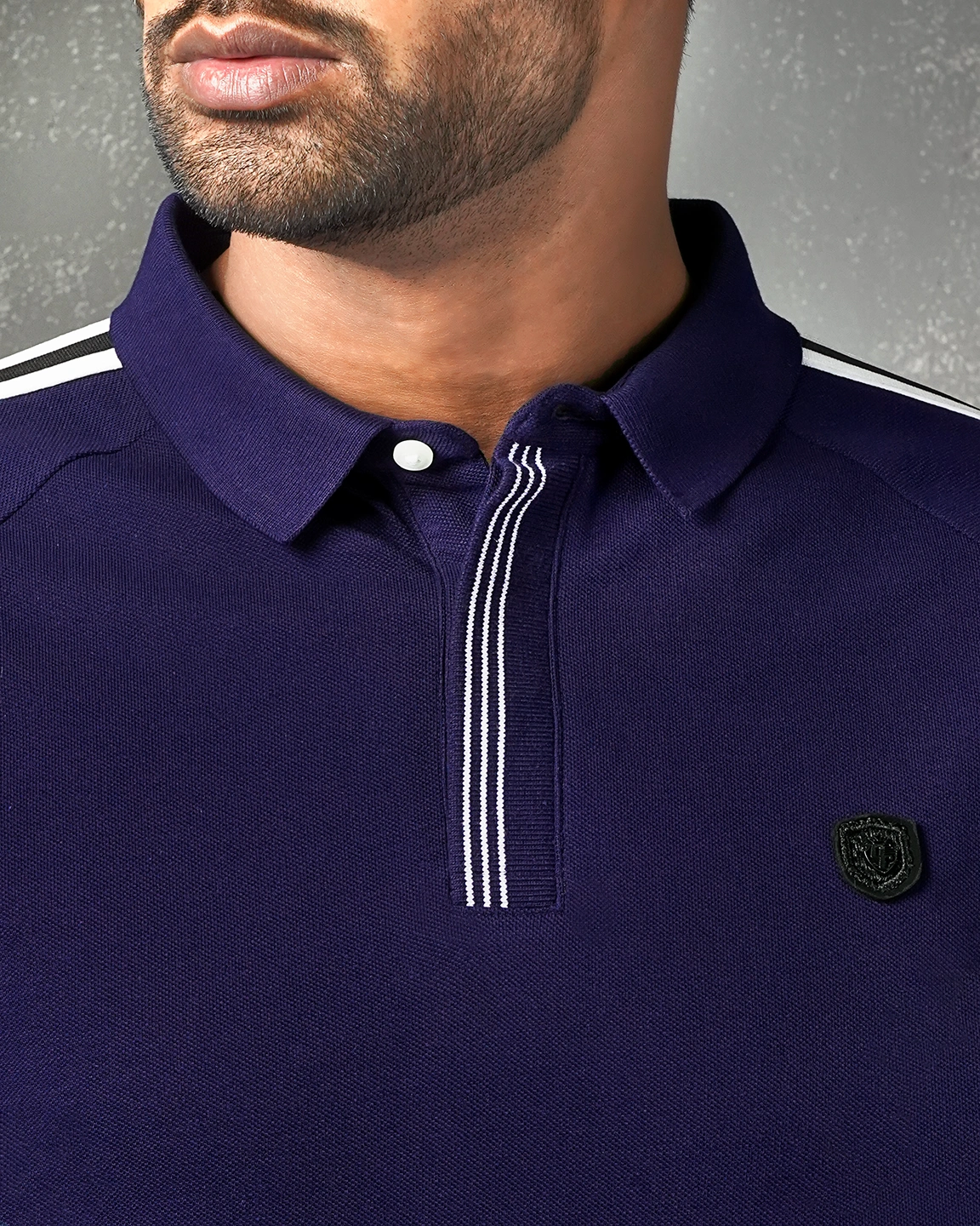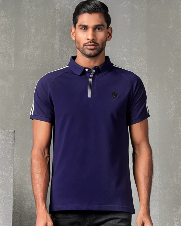 Short sleeve & raglan sleeve rib cuff, Shoulder line has a decorative twill tape design and double button placket on rib. On chest has a patch details, half moon back yoke, straight hem, DTM Button.