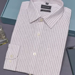 Luxury linen tailored fit formal shirt with long sleeve, front has a pocket, tie collar, front classic placket, curved hem.