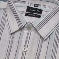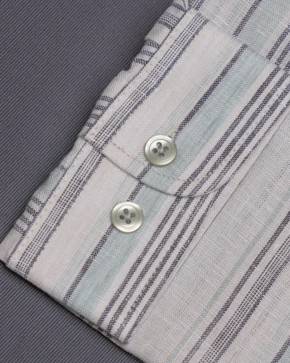 Luxury linen tailored fit formal shirt with long sleeve, front has a pocket, tie collar, front classic placket, curved hem.