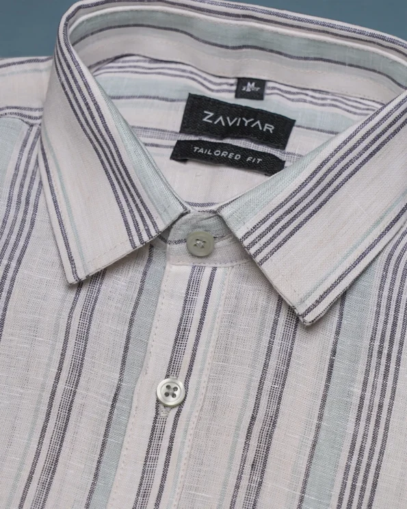 Luxury linen tie collar tailored fit woven formal shirt | Sea Green