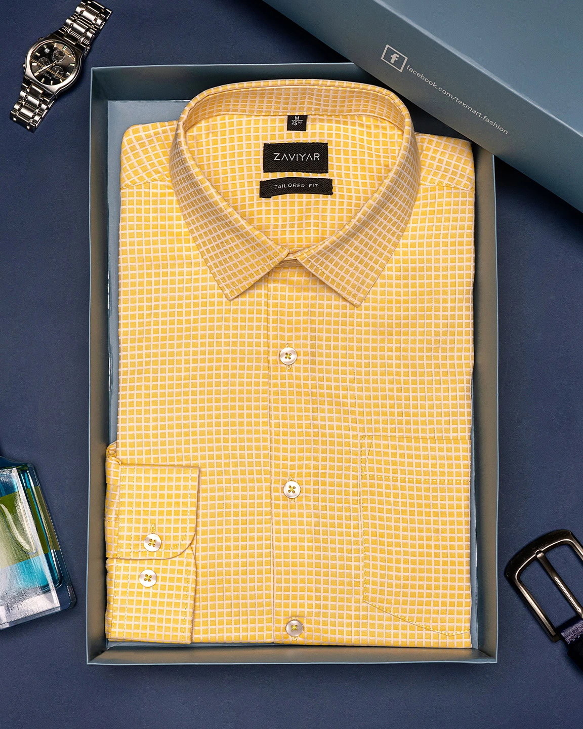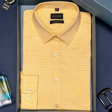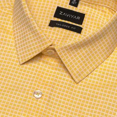 Giza cotton tailored fit woven formal shirt, Long sleeve, Front has a pocket, tie collar, front button opening classic placket, Curved hem.