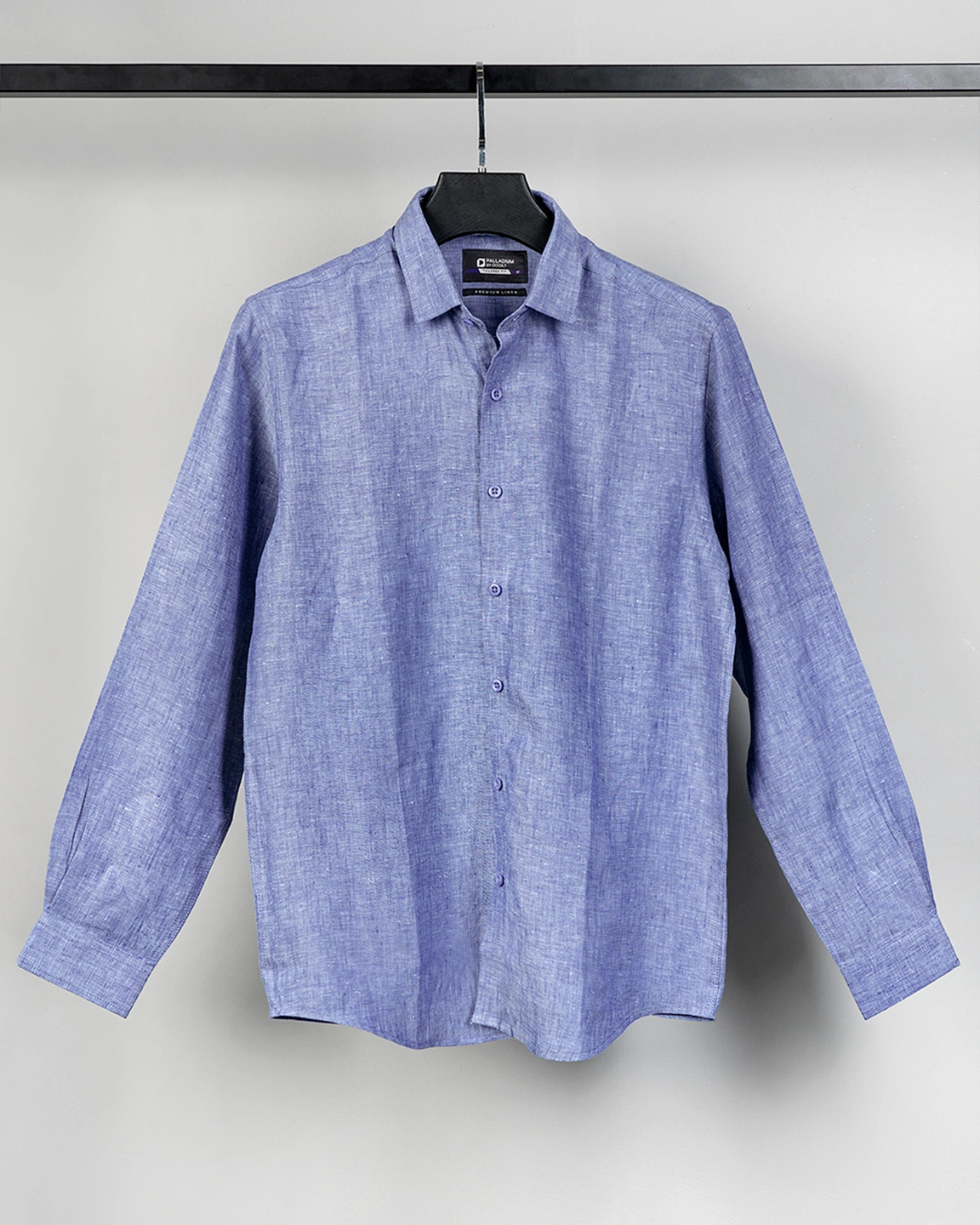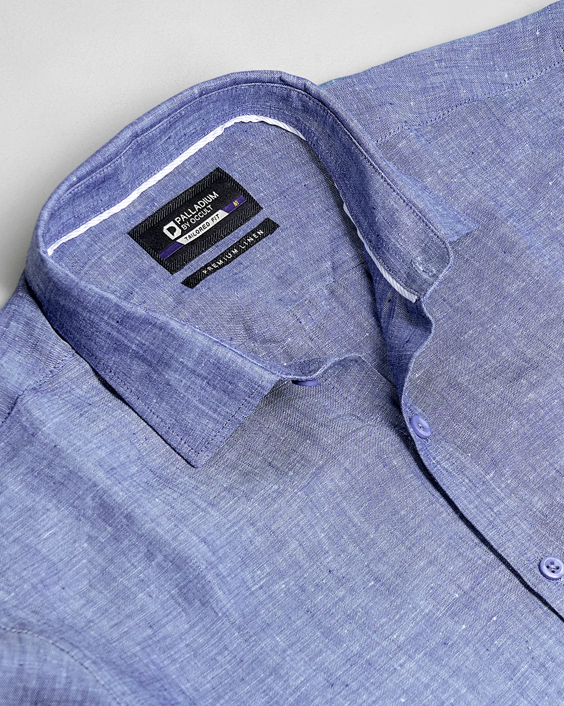 Product Description : Palladium Tailored Fit luxury linen woven shirt, Inside band with contrast piping. Long sleeve with round cuff & contrast gamble. Shallow collar & back yoke with embroidered loop, Curved hem.