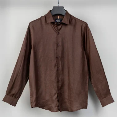 Luxury Linen tailored fit woven shirt | Chocolate