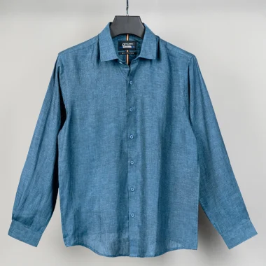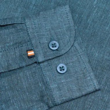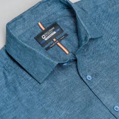 Product Description: Palladium Tailored Fit shirt luxury linen woven shirt. Long sleeve with round cuff & sleeve placket with twill tape. Shallow collar & moon middle & back yoke with box pleat, Curved hem.
