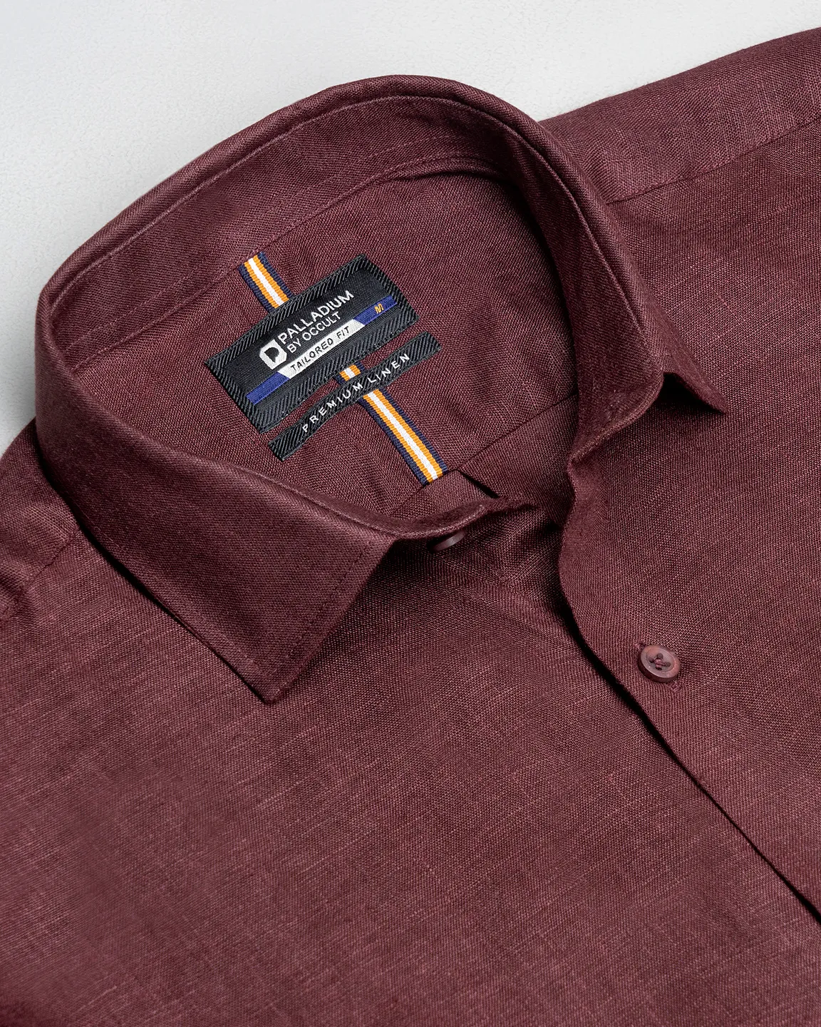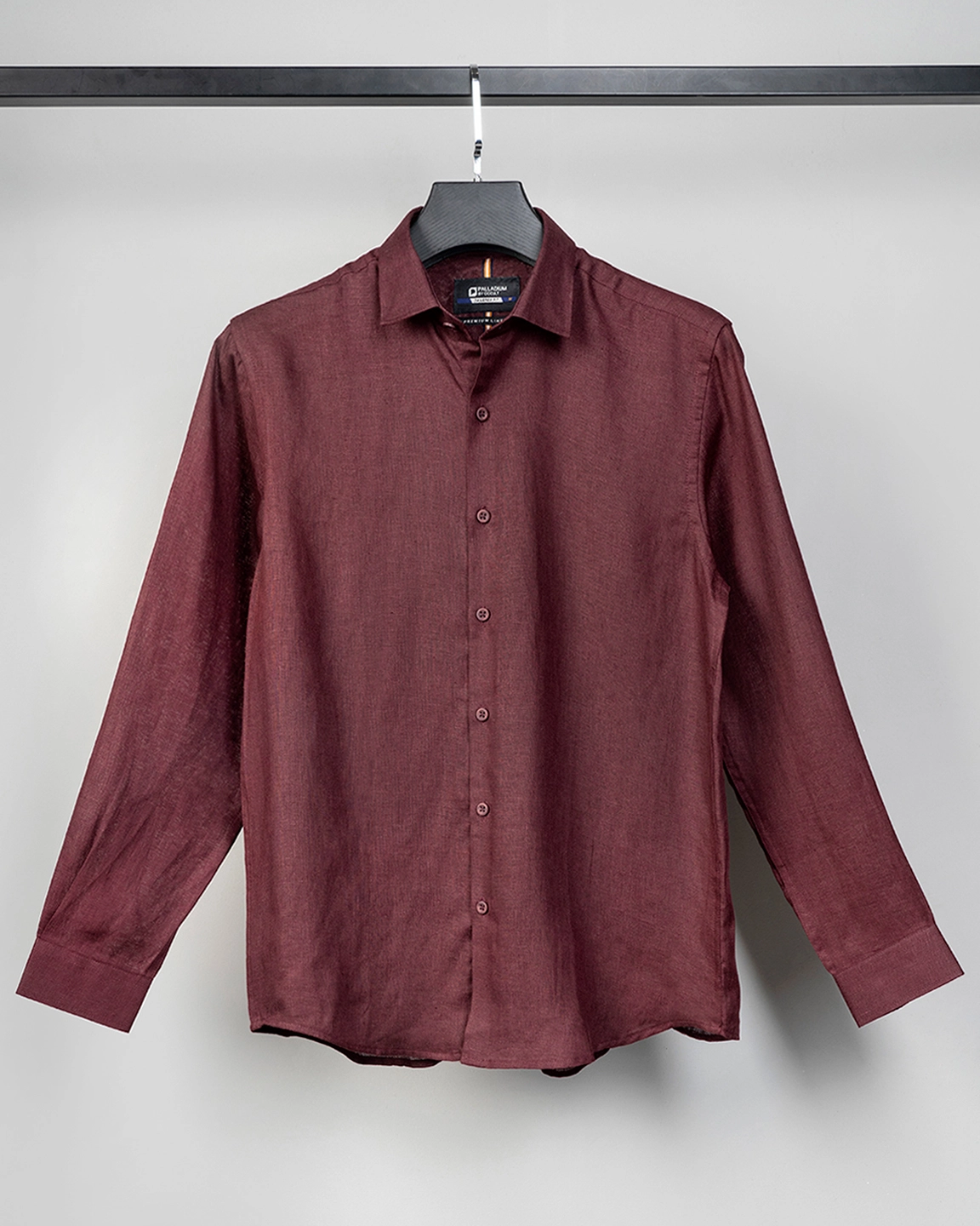 Product Description: Palladium Tailored Fit shirt luxury linen woven shirt. Long sleeve with round cuff & sleeve placket with twill tape. Shallow collar & moon middle & back yoke with box pleat, Curved hem.