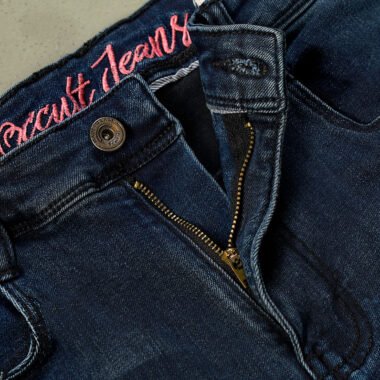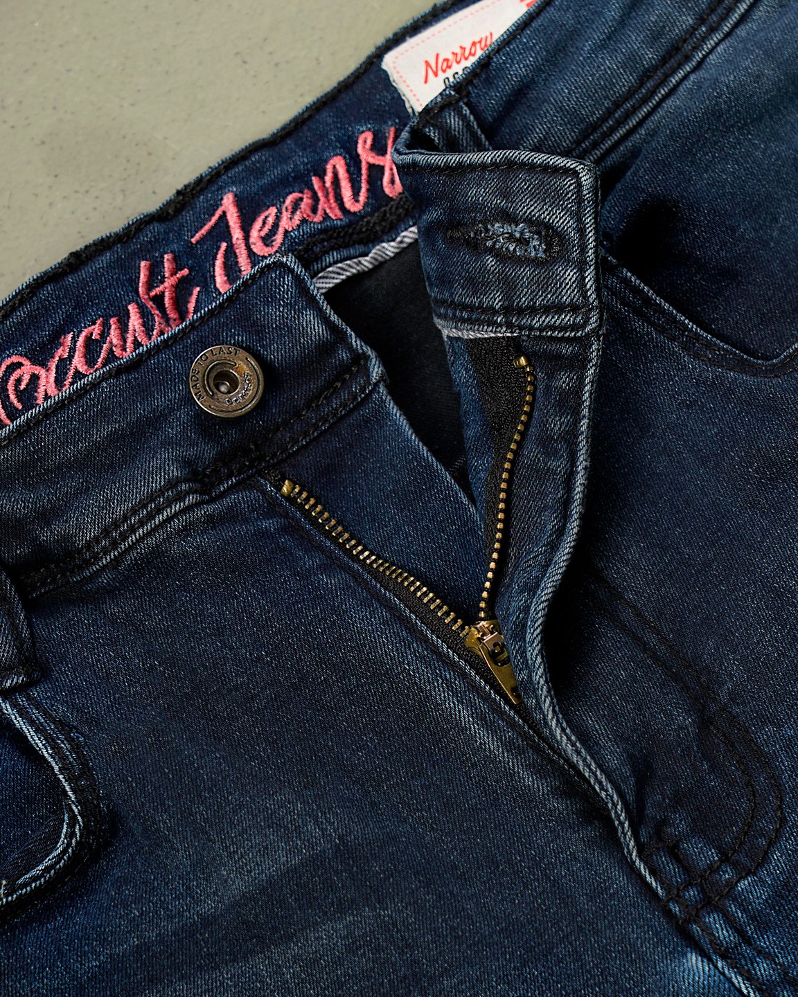 Denim narrow fit cotton stretch 5 pocket denim jeans, mid rise long pant, Zip closure. Light wash denim pant, six Loop waistband with button closure.