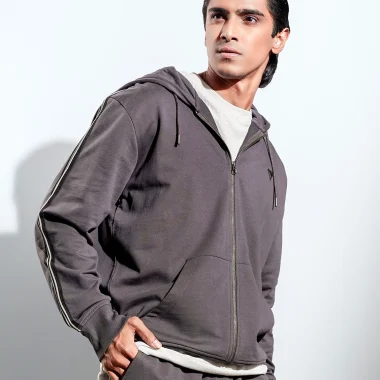 Product Description: Regular fit full zipper knit hoodie. Crafted from a soft, high-quality 300 GSM terry fabric that feels comfortable on the skin, making it ideal for all-day wear. Sleeve with tricot tape, chest patch logo design and bottom loop patch with rib hem details.