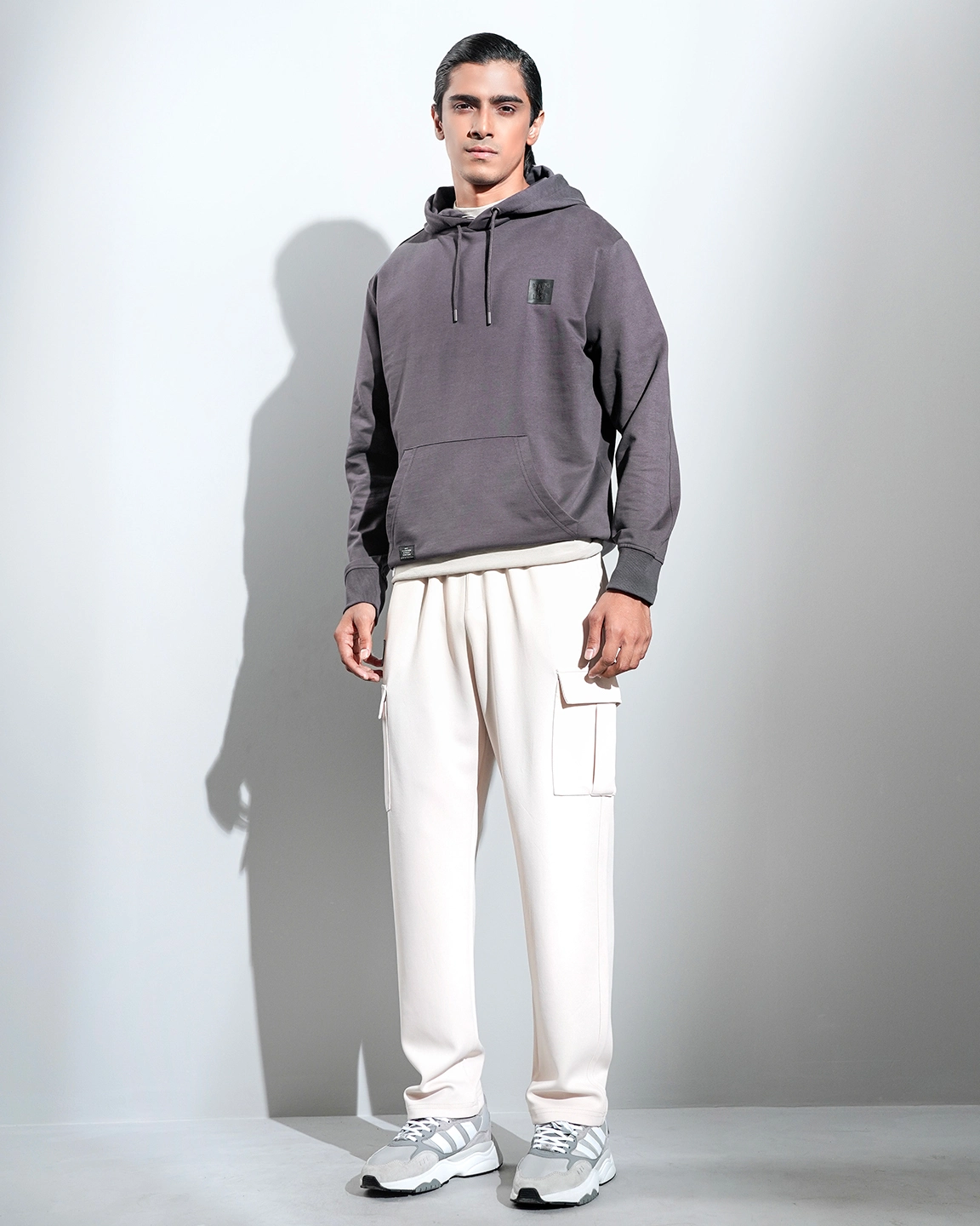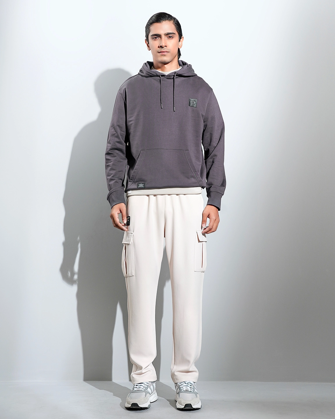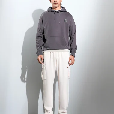 Product Description: Drop Shoulder knit hoodie. Crafted from a soft, high-quality 300 GSM terry fabric that feels comfortable on the skin, making it ideal for all-day wear. Sleeve cut & sew with mid-chest print design and full sleeve with rib hem details.