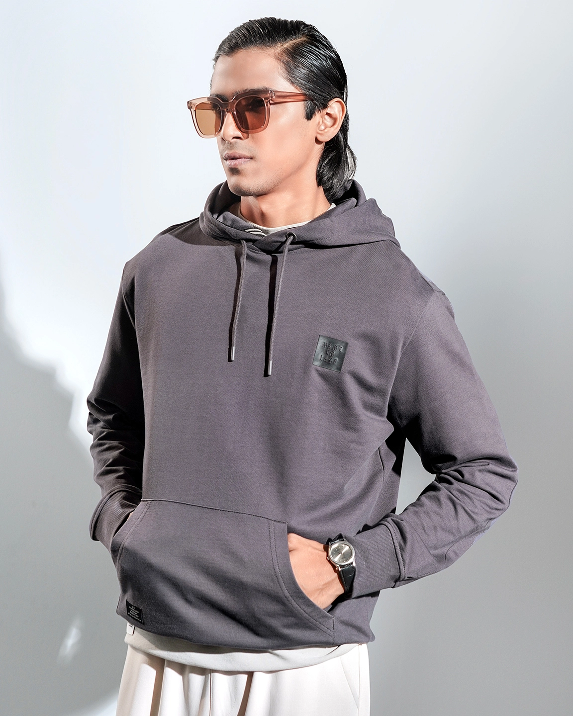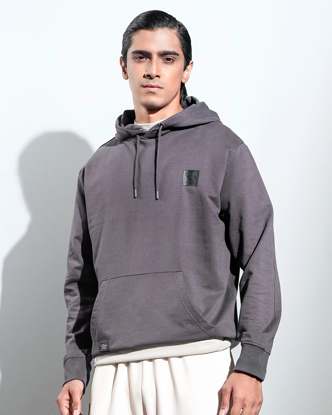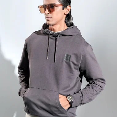 Product Description: Regular fit knit hoodie. Crafted from a soft, high-quality 300 GSM terry fabric that feels comfortable on the skin, making it ideal for all-day wear. Has a hood inside tape detail, chest rubber print design and full sleeve with rib hem details.