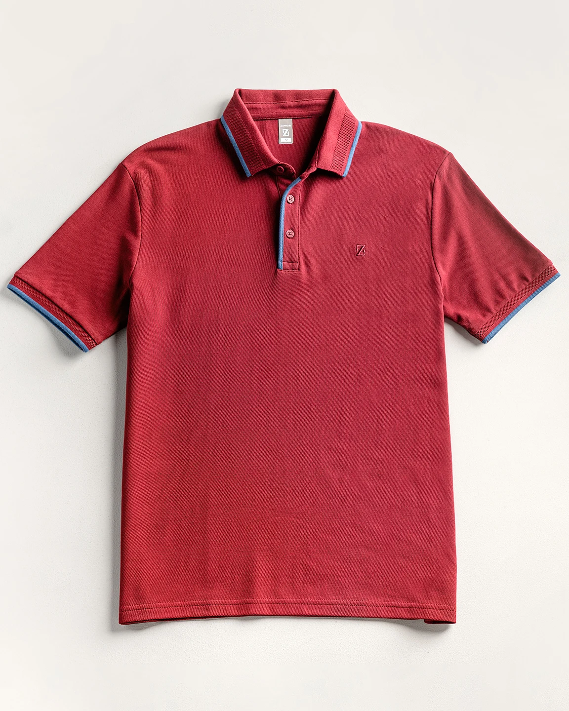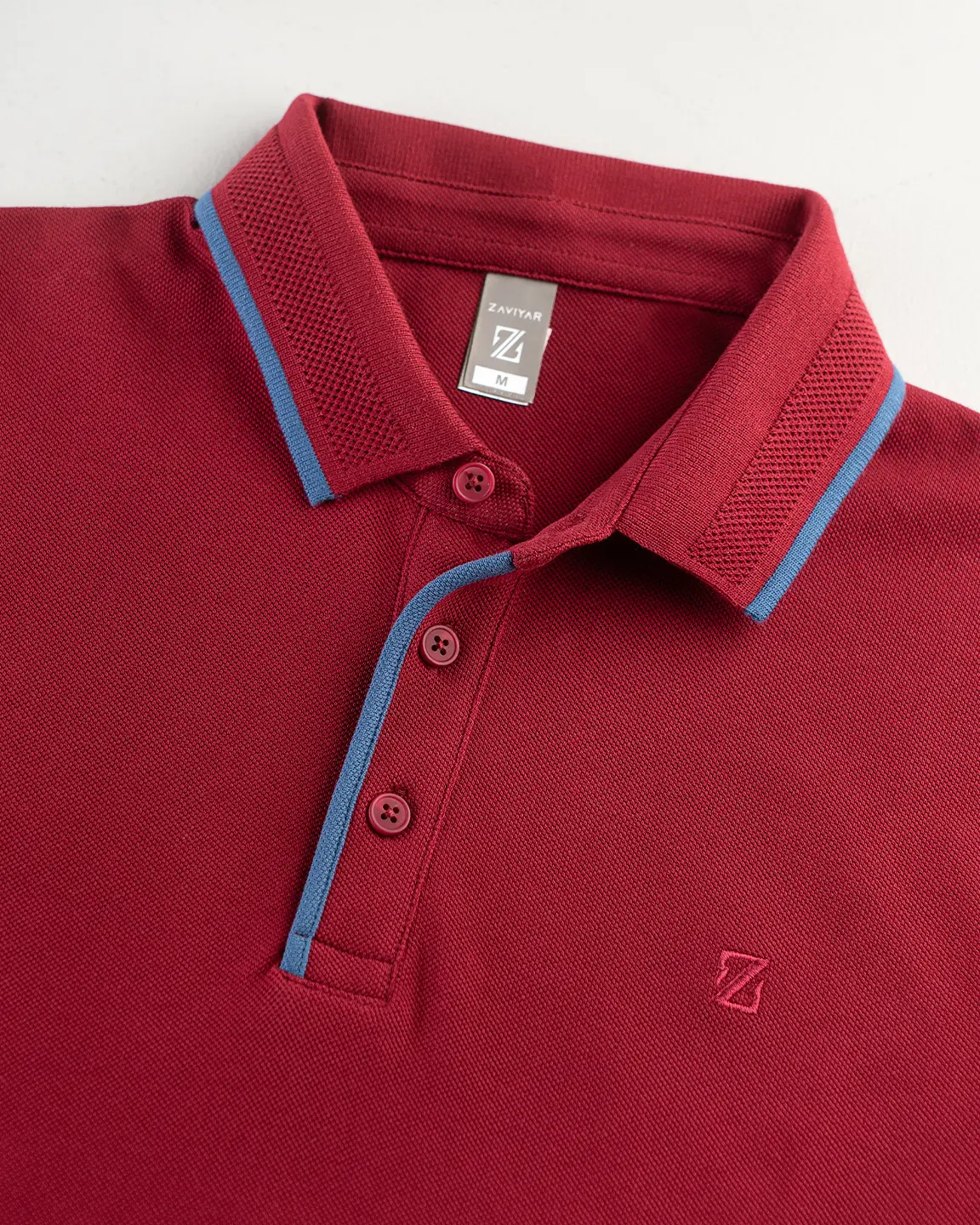 Product Description: Polo shirt by Zaviyar. Subtle contrast tipping along the collar, button placket, and sleeves, half-length sleeves with ribbed cuff, and chest embroidery logo detailing.